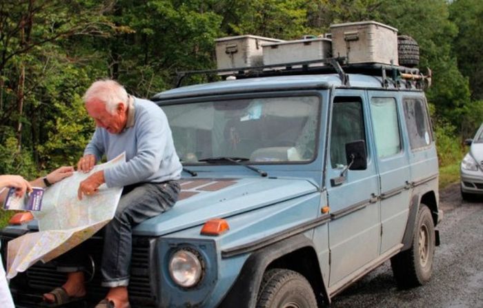 Немец Гюнтер Хольторф начал путешествие в 1989 году. За 23 года объехал весь земной шарик на своем Mercedes-Benz Gelandewagen и продолжает двигаться вперед. Свой путь он начал с поездки в Африку с женой, после чего они решили не возвращаться домой и продолжать путешествовать. За это время было покорено 800 тысяч километров — это приблизительно 20 путешествий вокруг Земли. Машина, за рулем которой он провел все эти годы, перенесла всего несколько мелких поломок, которые автомобилист устранил сам. Жена Гюнтера умерла несколько лет назад, но он продолжил свой путь вокруг земного шарика, так как на то была воля его жены.
